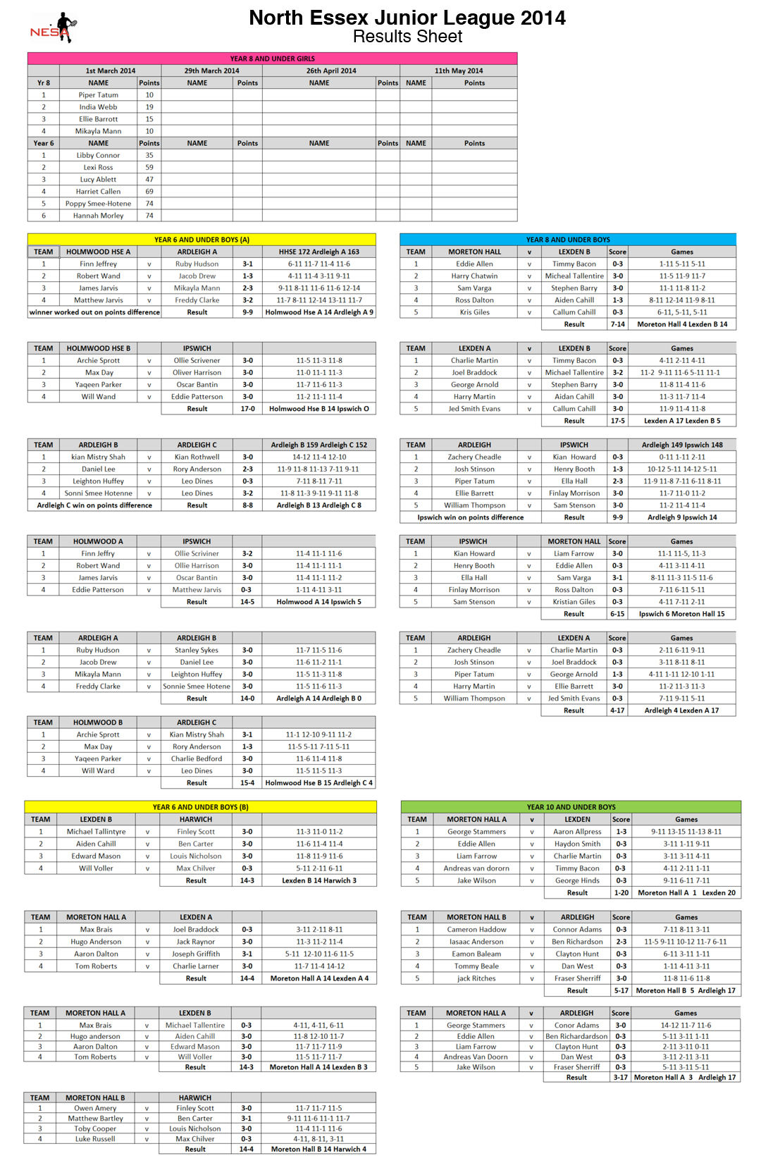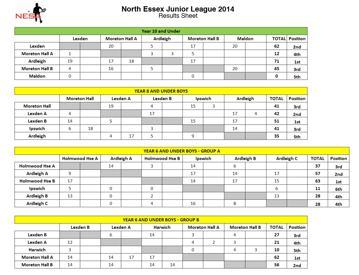 Latest results from the North Essex Junior League.